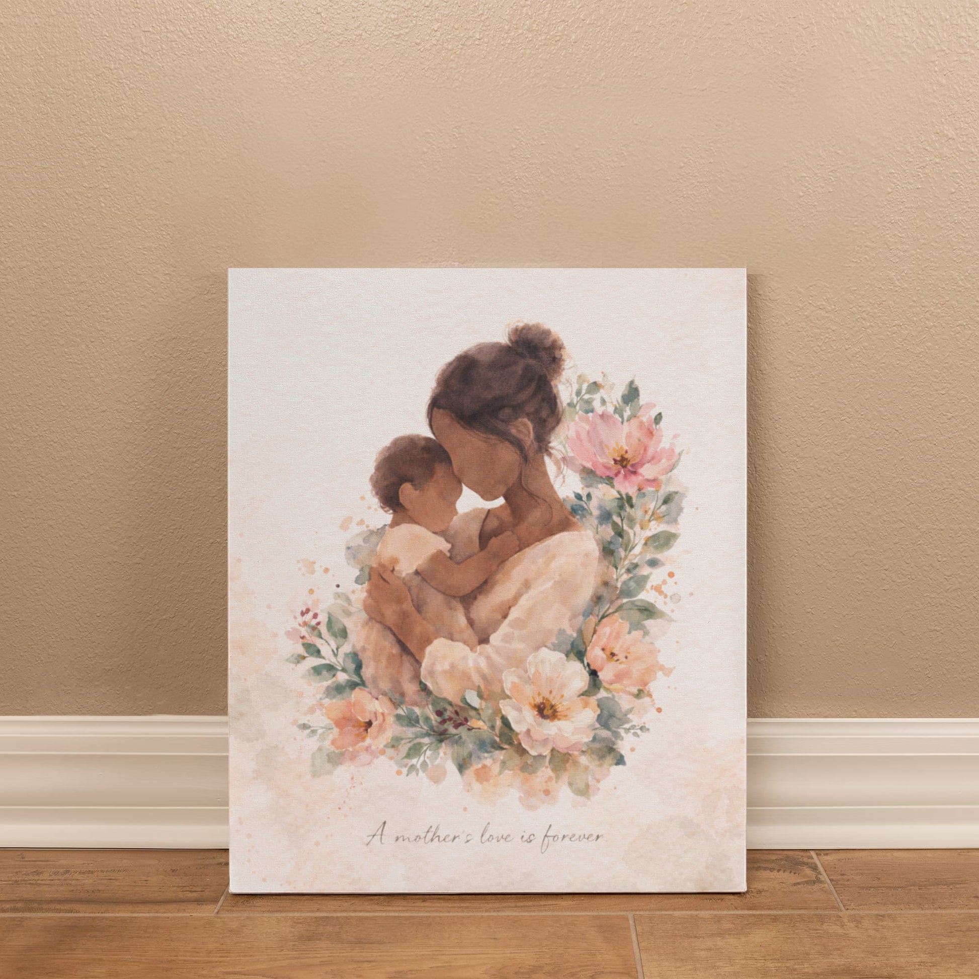 Light Skin Mother and Child Watercolor Canvas Wall Art | Elegant Motherhood Artwork | Meaningful Mother's Day Gift