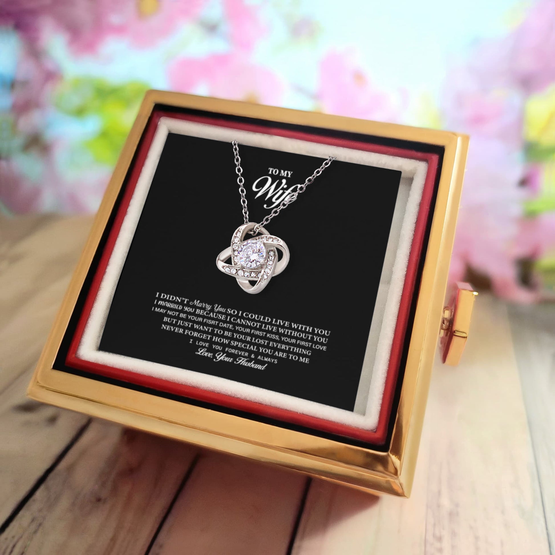 Love Knot Necklace., Deeply Romantic Message Card Gift from Husband – I Didn't Marry You So I Could Live With You, I Married You Because I Cannot Live Without You