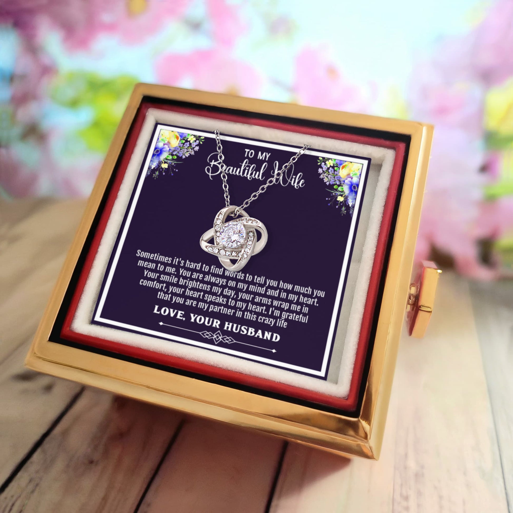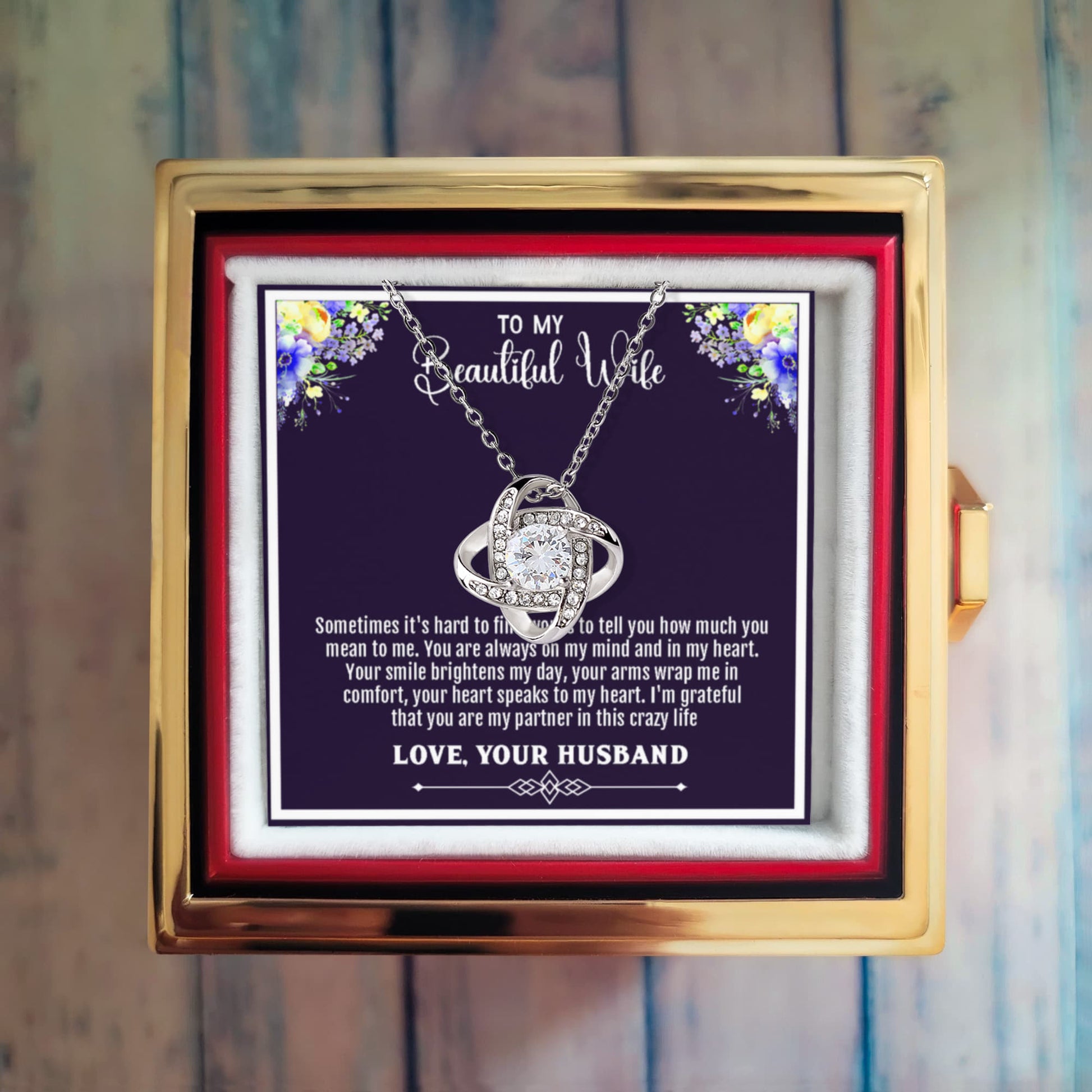 Love Knot Necklace, To My Beautiful Wife – Heartfelt Message Card Gift from Husband Expressing Deep Love, Gratitude, and Appreciation – Romantic Keepsake for Wife