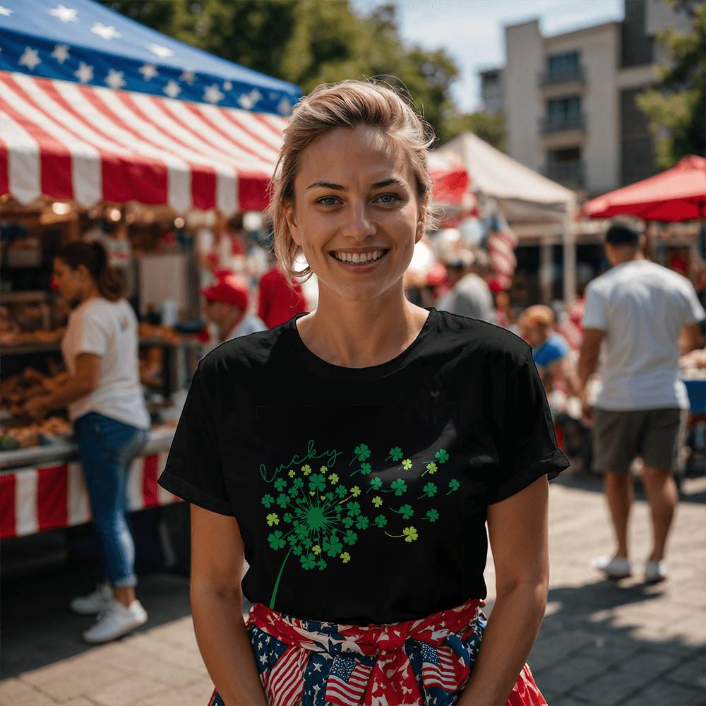 Lucky Shamrock T-Shirt St. Patrick's Day Unisex Tee Irish Dandelion Clover Print Bella+Canvas 3001 Gift