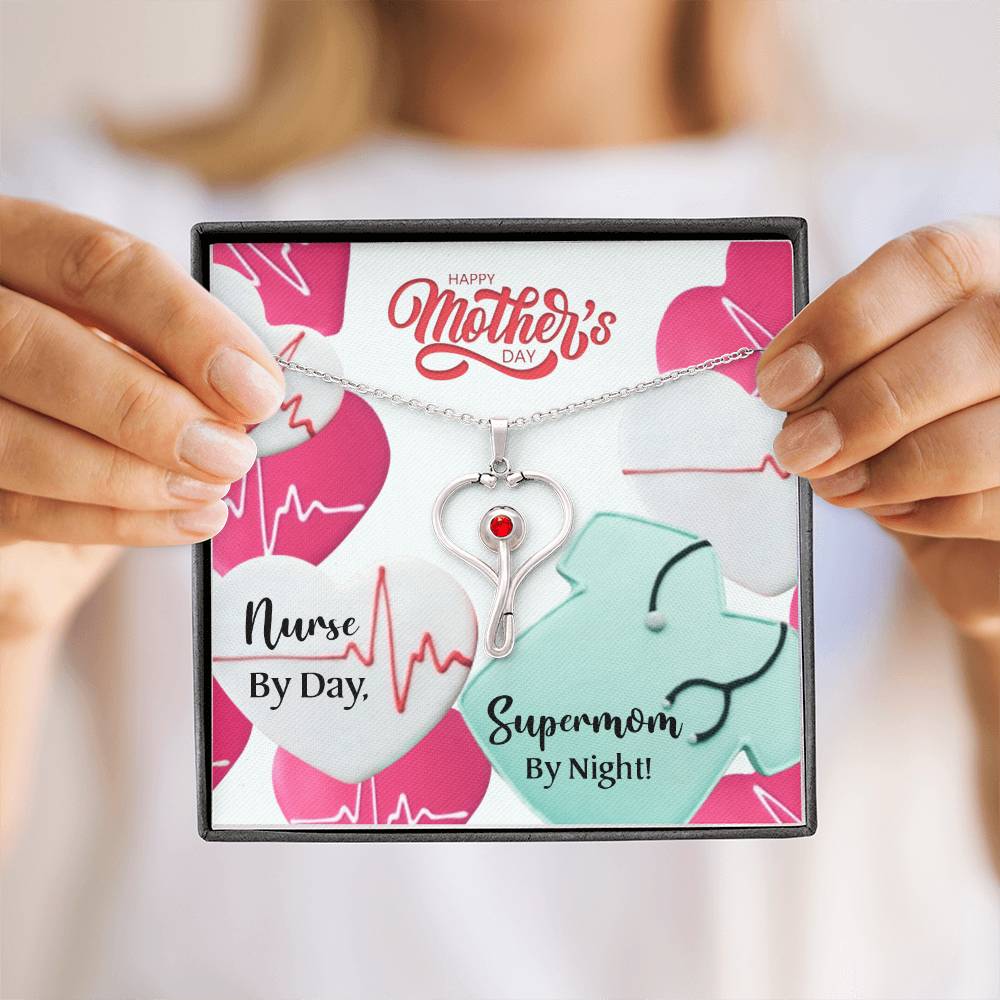 Supermom Nurse Gift - Mother's Day Stethoscope Necklace for Moms Who Save Lives