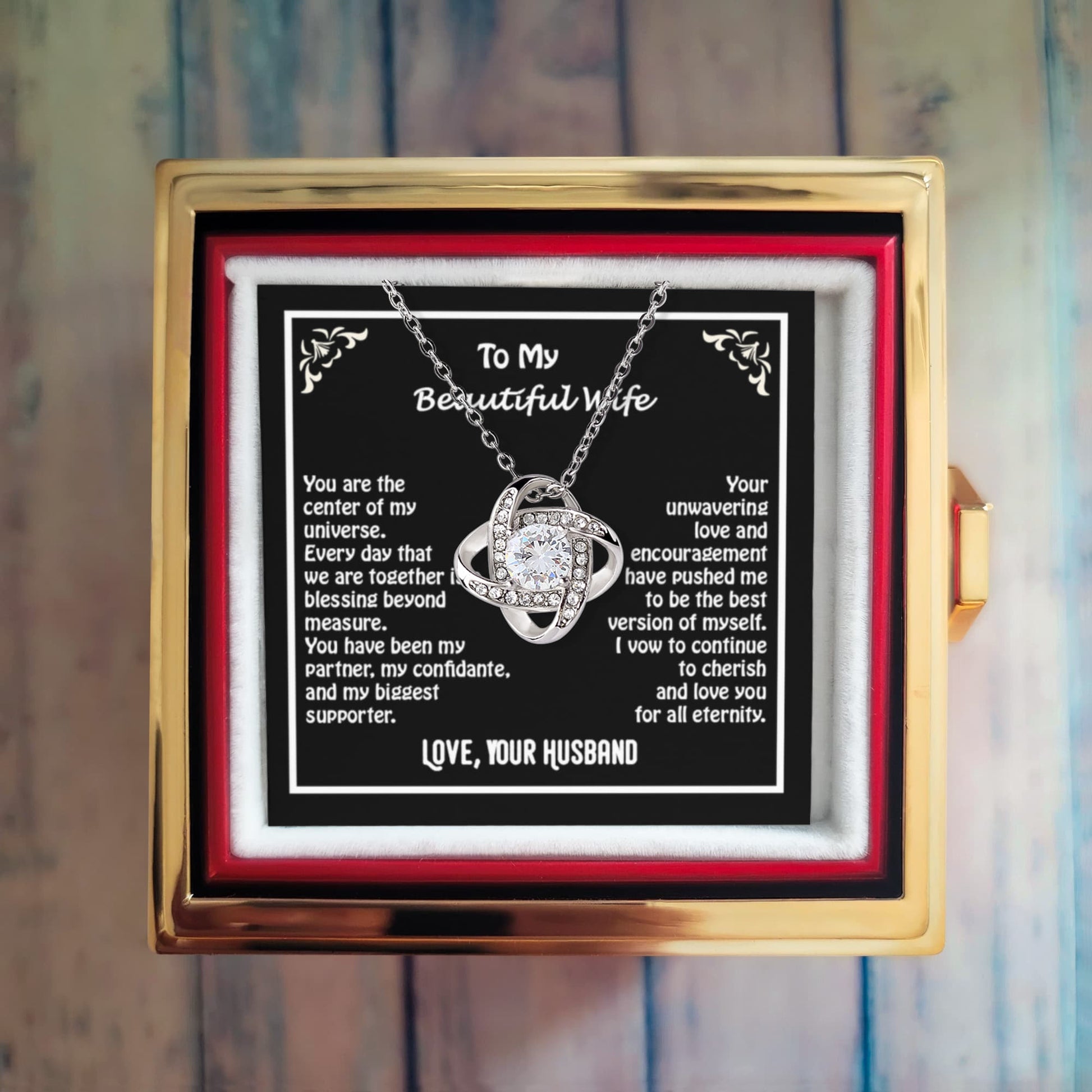 To My Beautiful Wife - Love Knot Necklace - Romantic Message of Love and Devotion from Husband - Heartfelt Gift for Anniversary, Birthday