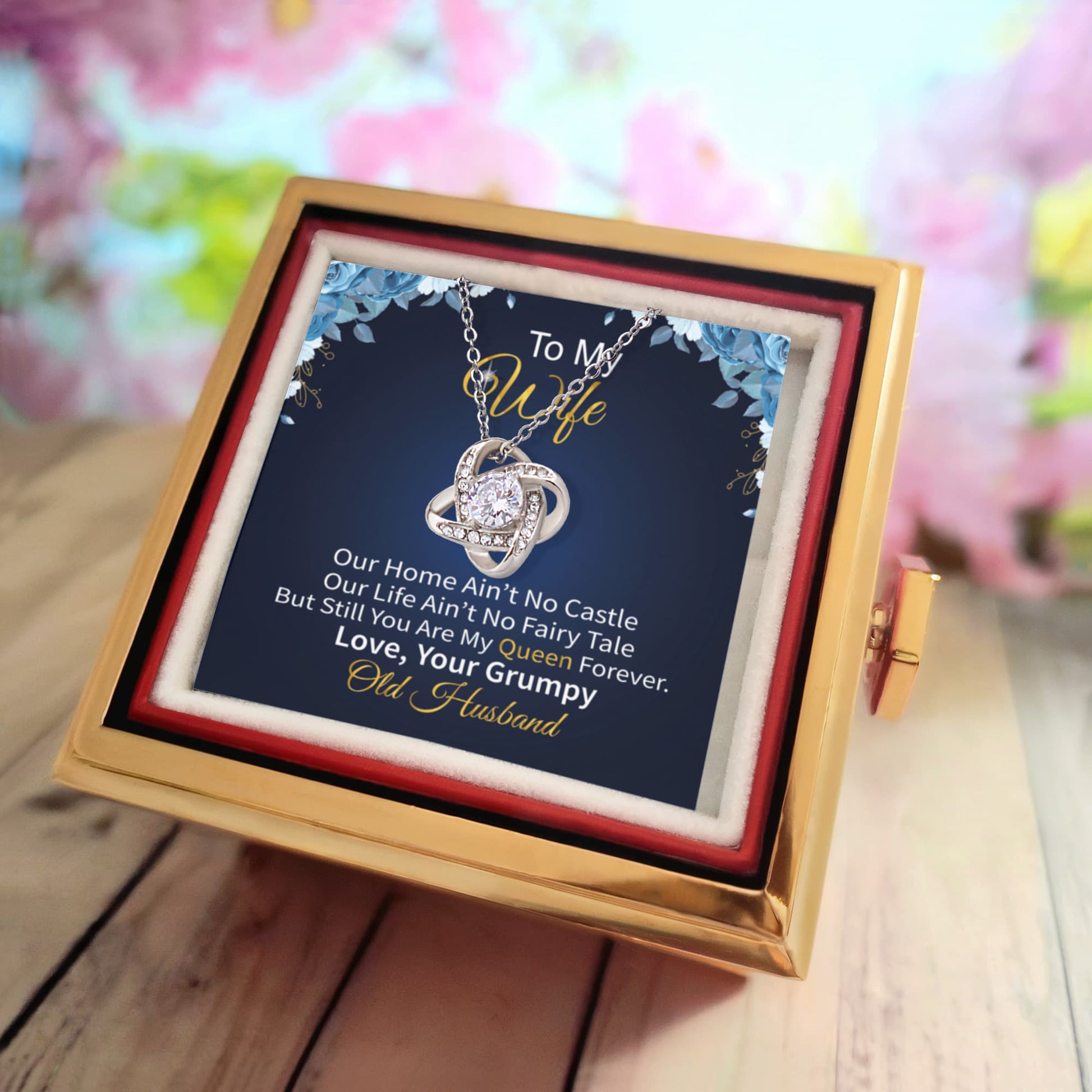 To My Wife –Love Knot Necklace, Funny and Sweet Message Card from Your Grumpy Old Husband – You're My Queen Forever Gift – Perfect for Birthday, Anniversary