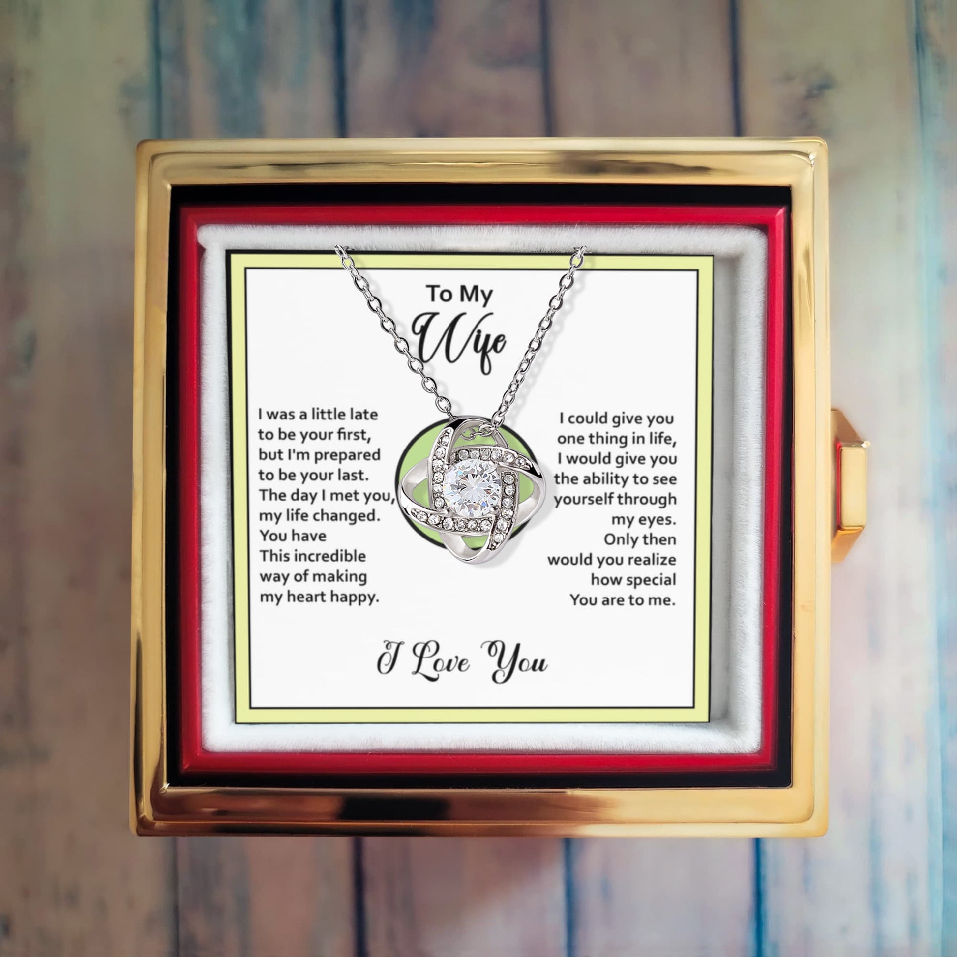 To My Wife –Love Knot Necklace, Romantic Gift from Husband with a Heartfelt Message of Love, Appreciation, and Devotion – Perfect for Anniversary, Birthday